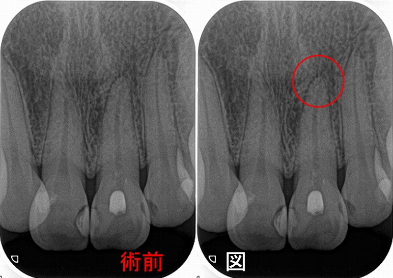 これは歯科医師が起こした医原性疾患で、治療をしたことにより起こった問題です。