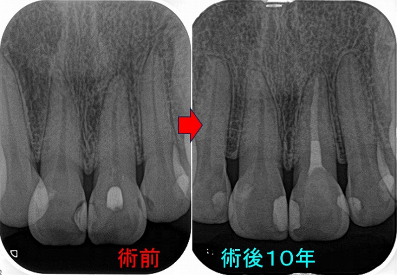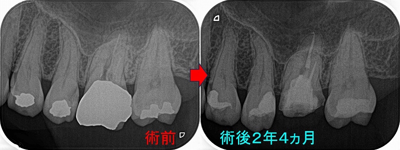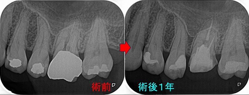 根尖病変は綺麗になくなり、咬んでも痛くはないそう。