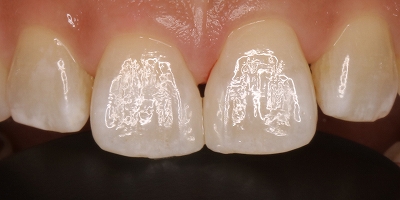 歯の裏側のエナメル質を薄く削ります。