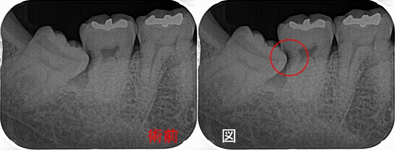 親知らずの影響で第2大臼歯遠心にカリエスが出来てしまったということです。