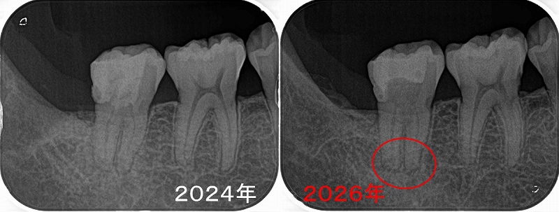 レントゲンでは根尖病変は小さくなってきているように見えます。