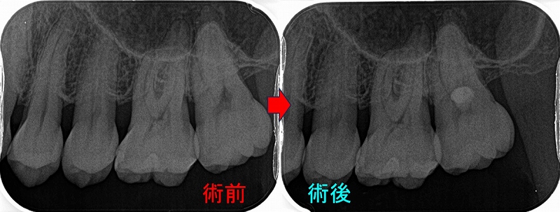 患者さんの了解を頂き、1回法にて根管治療+レジンコア+分割抜歯(2時間)