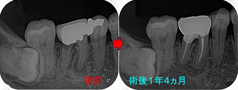クラウンSet後、根尖病変は殆ど無くなっています。